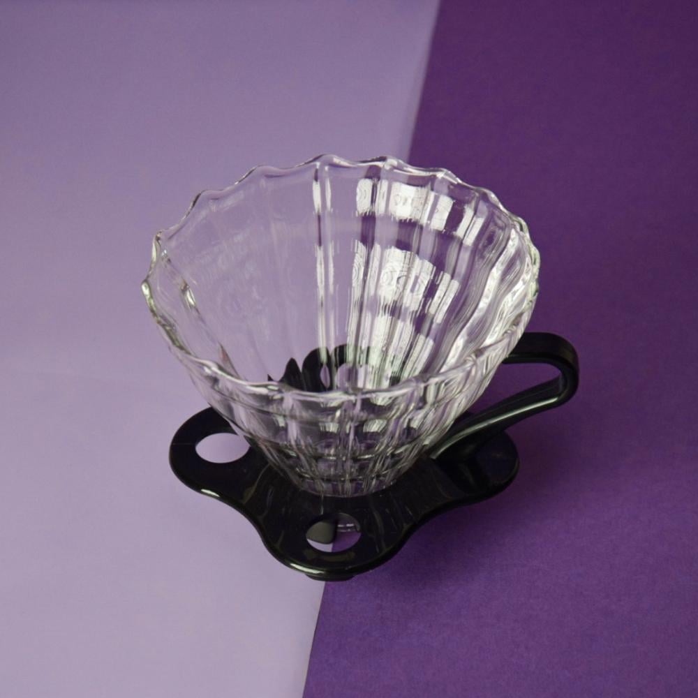 فلتر يدوي لتقطير القهوة V60 مع حامل زجاج شفاف 11.5x10سم